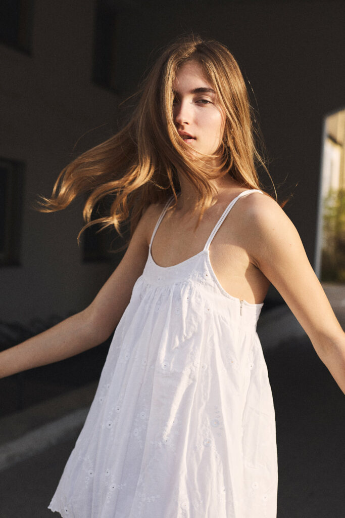 Die Strecke mit Misha habe ich in Zusammenarbeit mit Stylistin Alexandra Dietl konzipiert. Die nachhaltigen Modemarken harmonieren hervorragend mit Misha, die neben ihrer Modeltätigkeit auch Yogalehrerin ist.